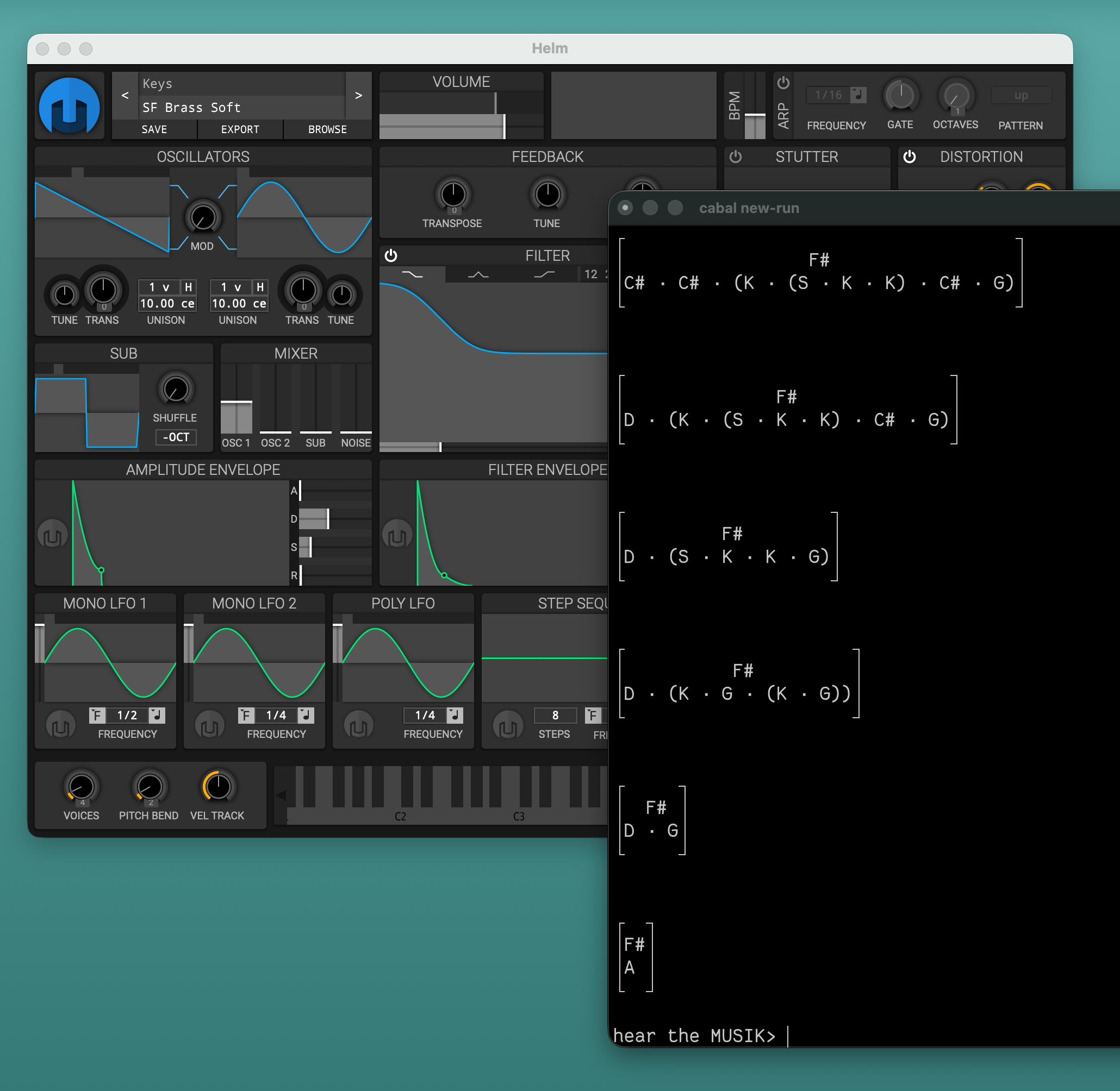 It only makes sense that we can use notes and musical passages as combinators too! They act as shifting operations, resp. their interval relative to middle C.